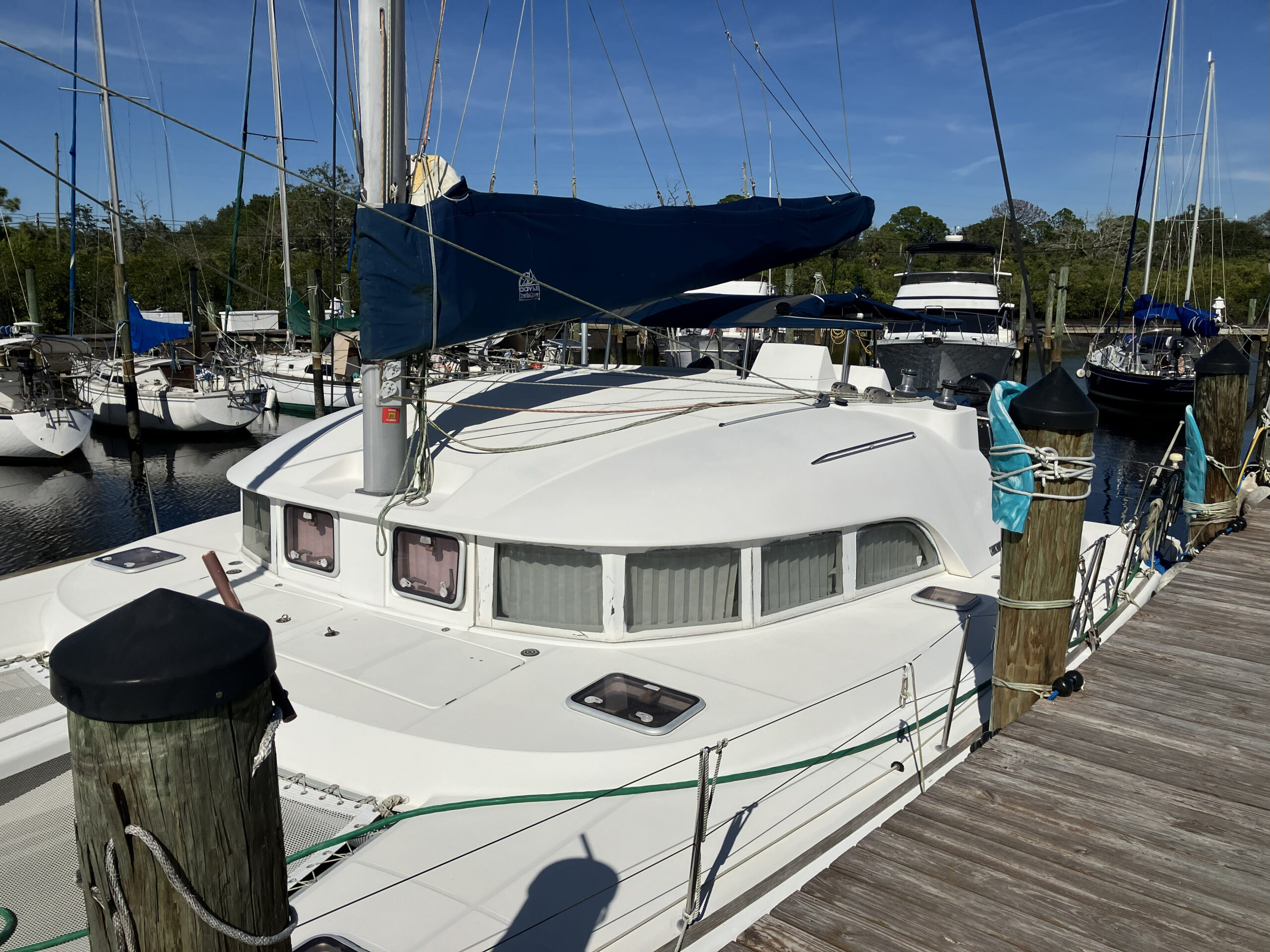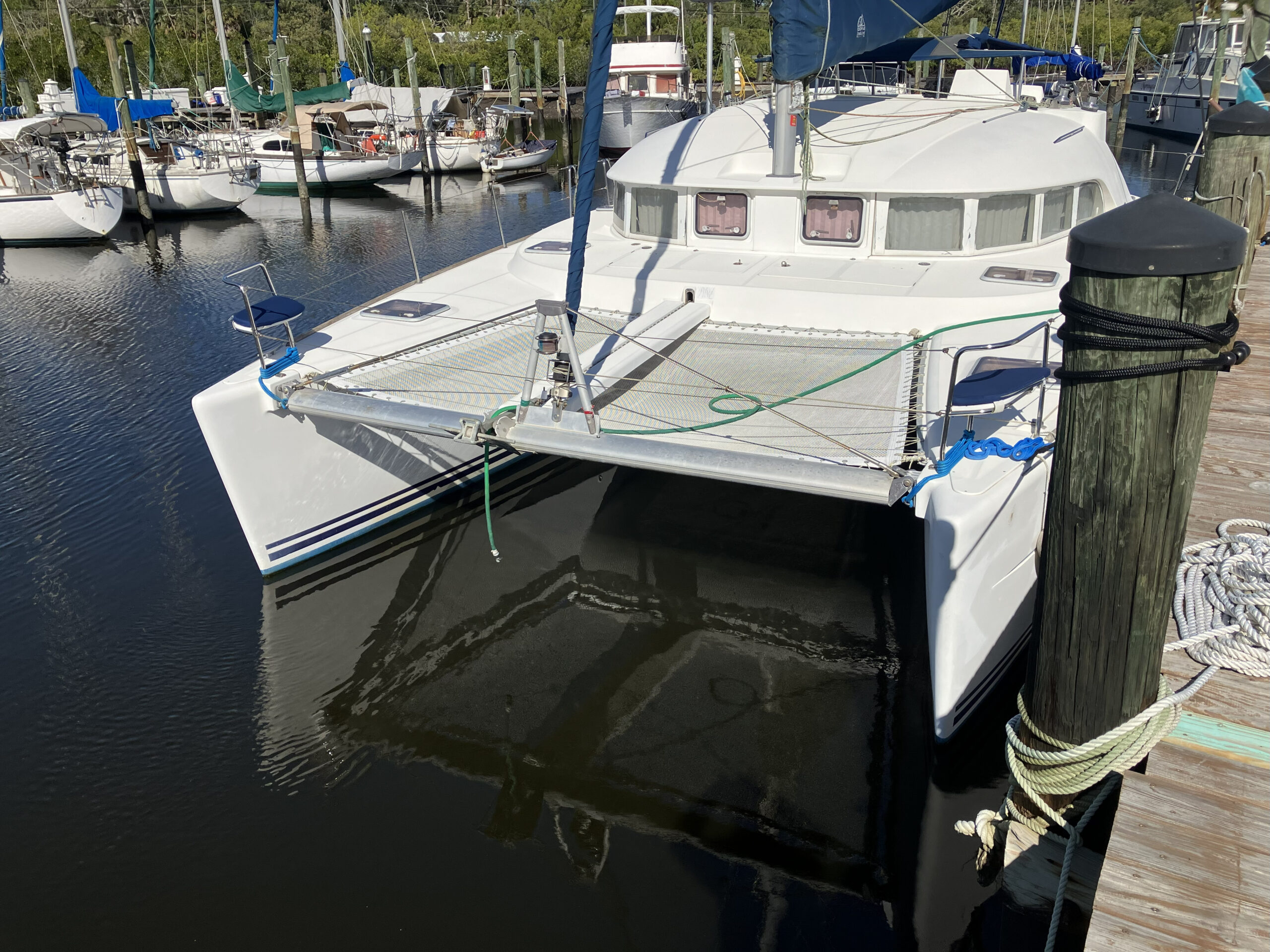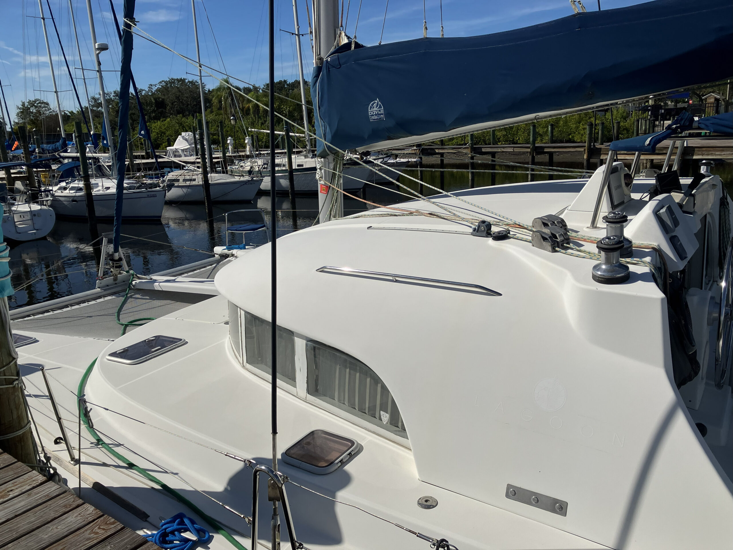 38 ft Lagoon Catamaran 2005, owned 19 years by same person and is in outstanding condition. Interior has a beautiful large salon with nav station and galley. 3 staterooms, 2 heads, master is huge. Fisher Panda gen with sound shield, 3 a/c units, 2 ref, water maker, main sail electric wench. Garmin c/p with radar and depth. Ray Marine auto pilot{hyd} with wind/depth. Twin Yanmar 3YM30 engines 1100 hours.