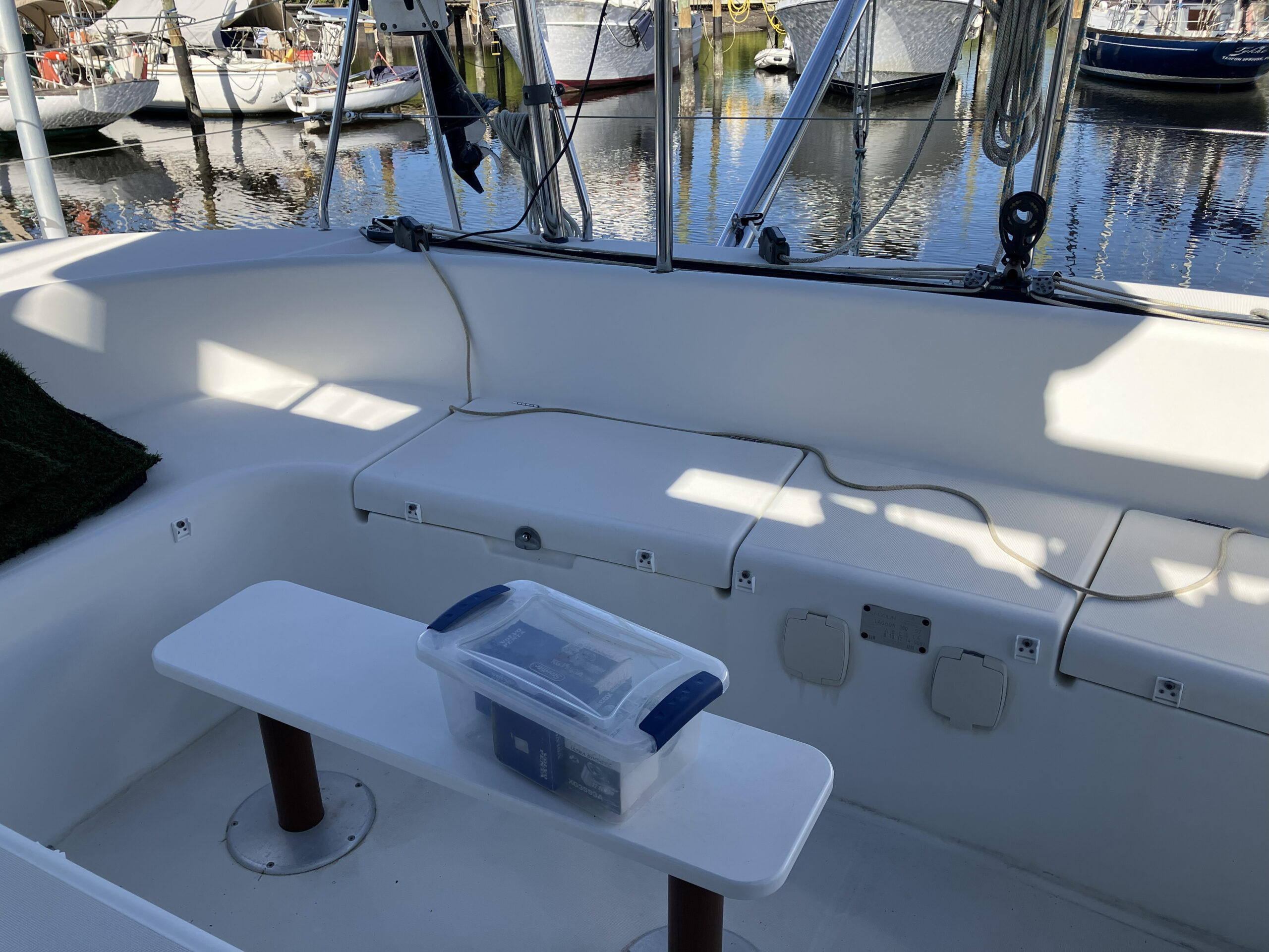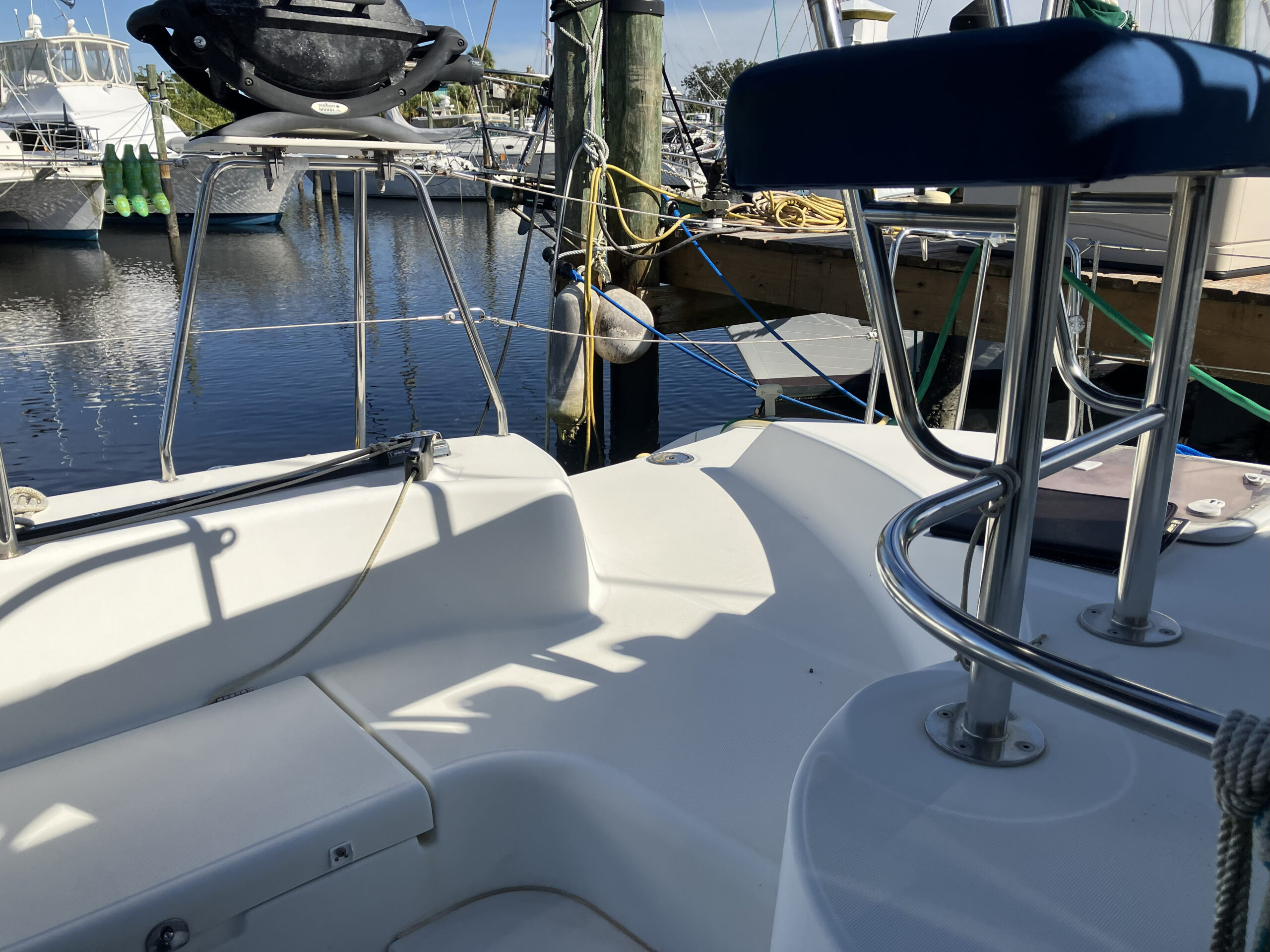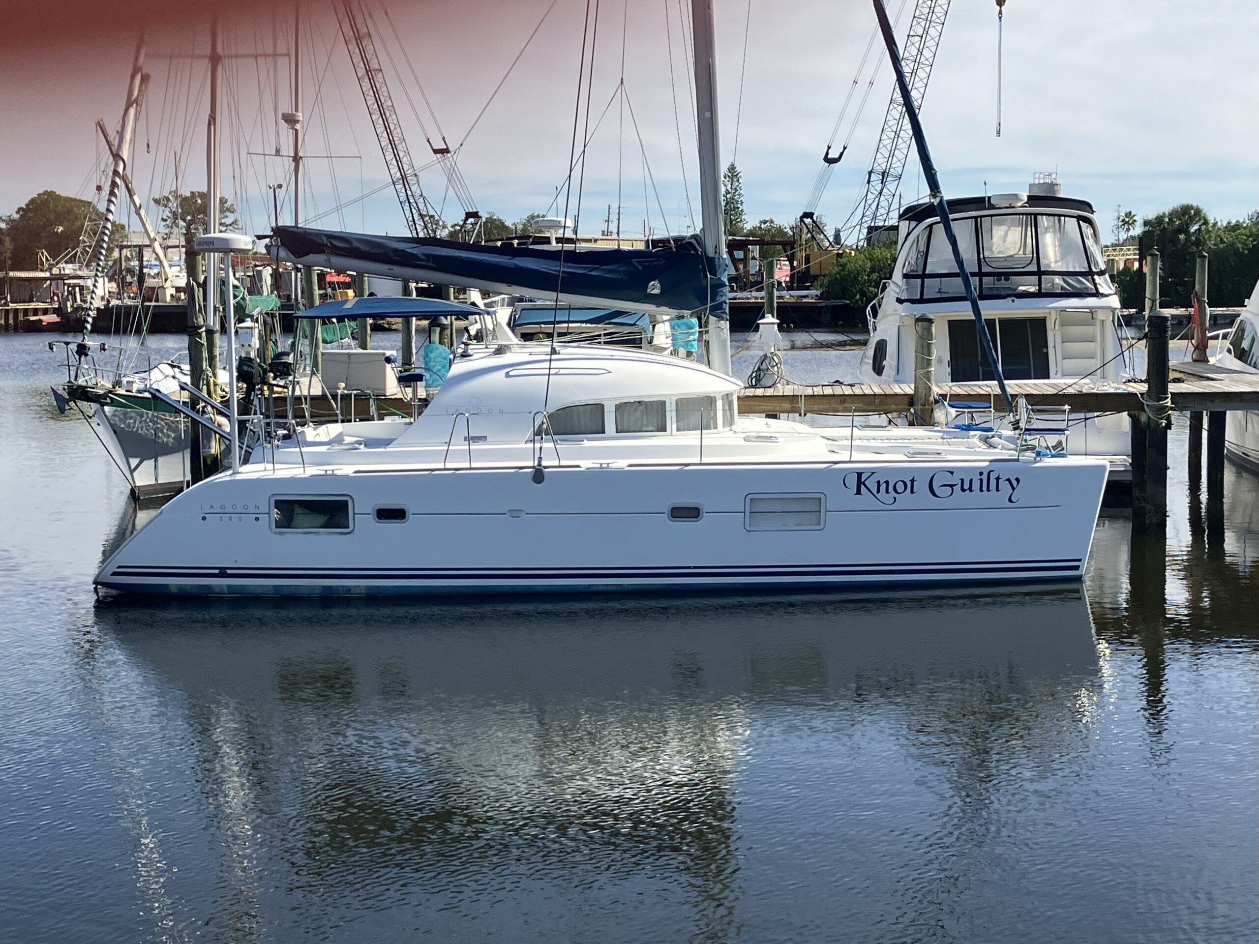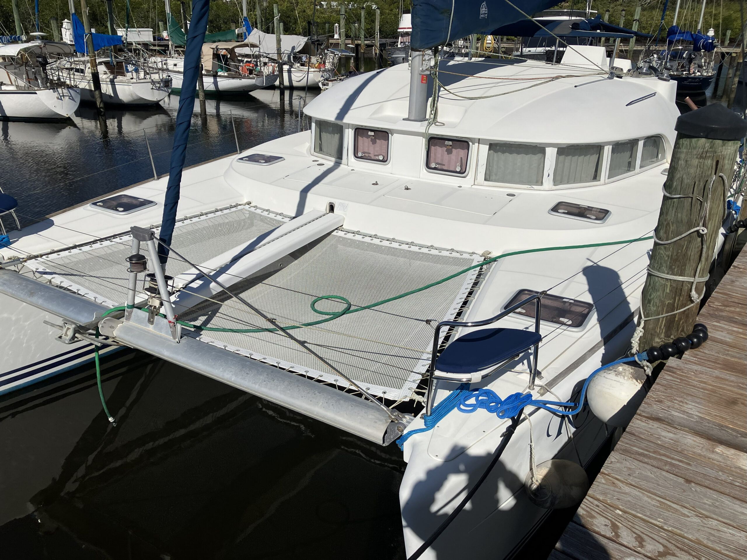 38 ft Lagoon Catamaran 2005, owned 19 years by same person and is in outstanding condition. Interior has a beautiful large salon with nav station and galley. 3 staterooms, 2 heads, master is huge. Fisher Panda gen with sound shield, 3 a/c units, 2 ref, water maker, main sail electric wench. Garmin c/p with radar and depth. Ray Marine auto pilot{hyd} with wind/depth. Twin Yanmar 3YM30 engines 1100 hours.